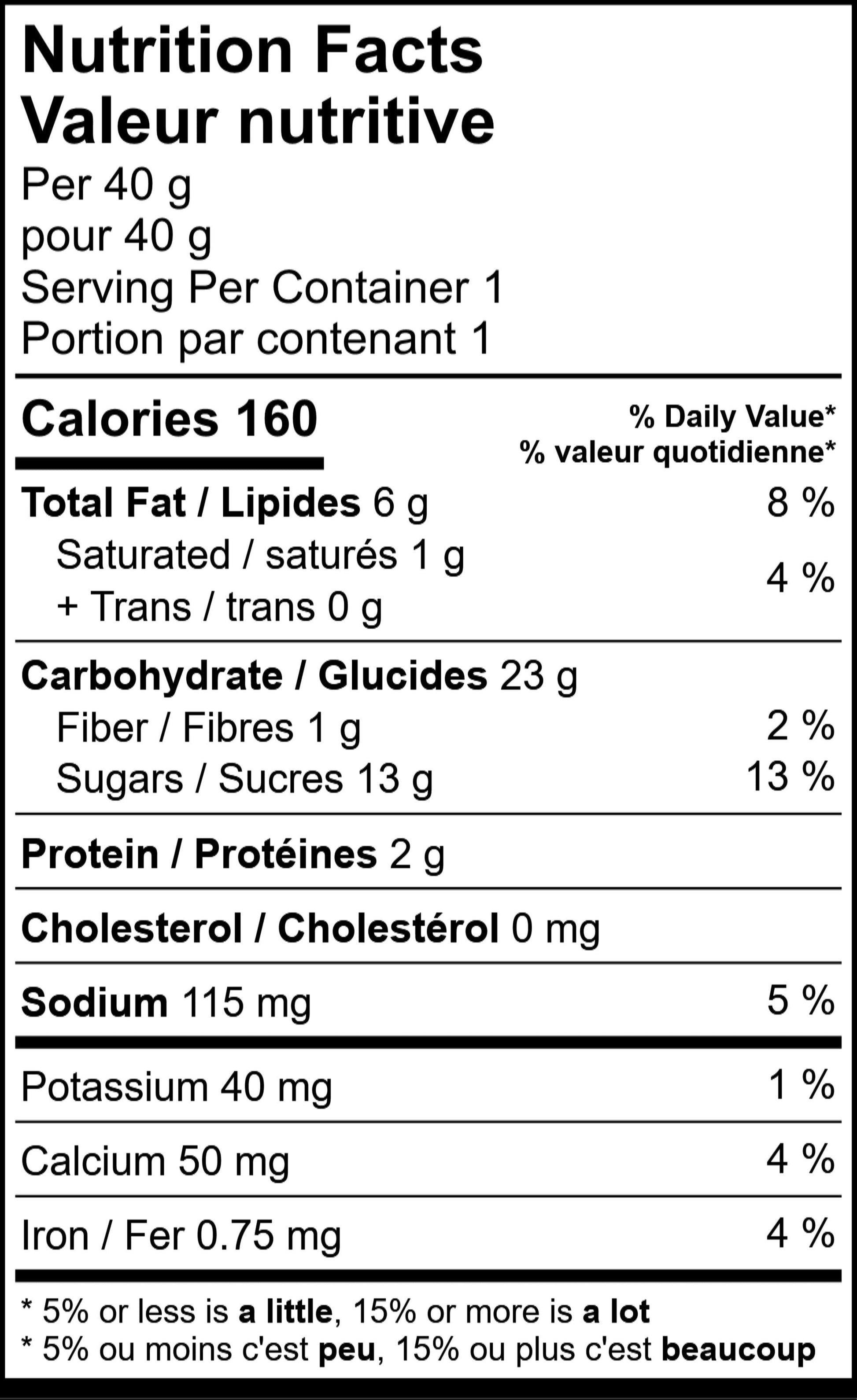 INGREDIENTS: Unbleached wheat flour, organic soy beverage (filtered water, whole organic soybeans, organic cane sugar, organic sunflower oil and/or organic canola oil, calcium carbonate, natural flavours, sea salt, xanthan gum, vitamin A palmitate, vitamin B2 (riboflavin), vitamin D2, vitamin B12, vitamin B1 (thiamine), vitamin B3 (niacin), vitamin B6, vitamin B5 (pantothenate)), sugar, sunflower oil, tofu (water, non-GMO soybeans, glucono-delta-lactone, magnesium chloride), brown sugar, tapioca syrup, baking powder, sustainable palm oil fruit, lemon juice concentrate, cinnamon, whole grain oats, vanilla bean paste, sea salt, blackstrap molasses, baking soda. CONTAINS: WHEAT, SOY