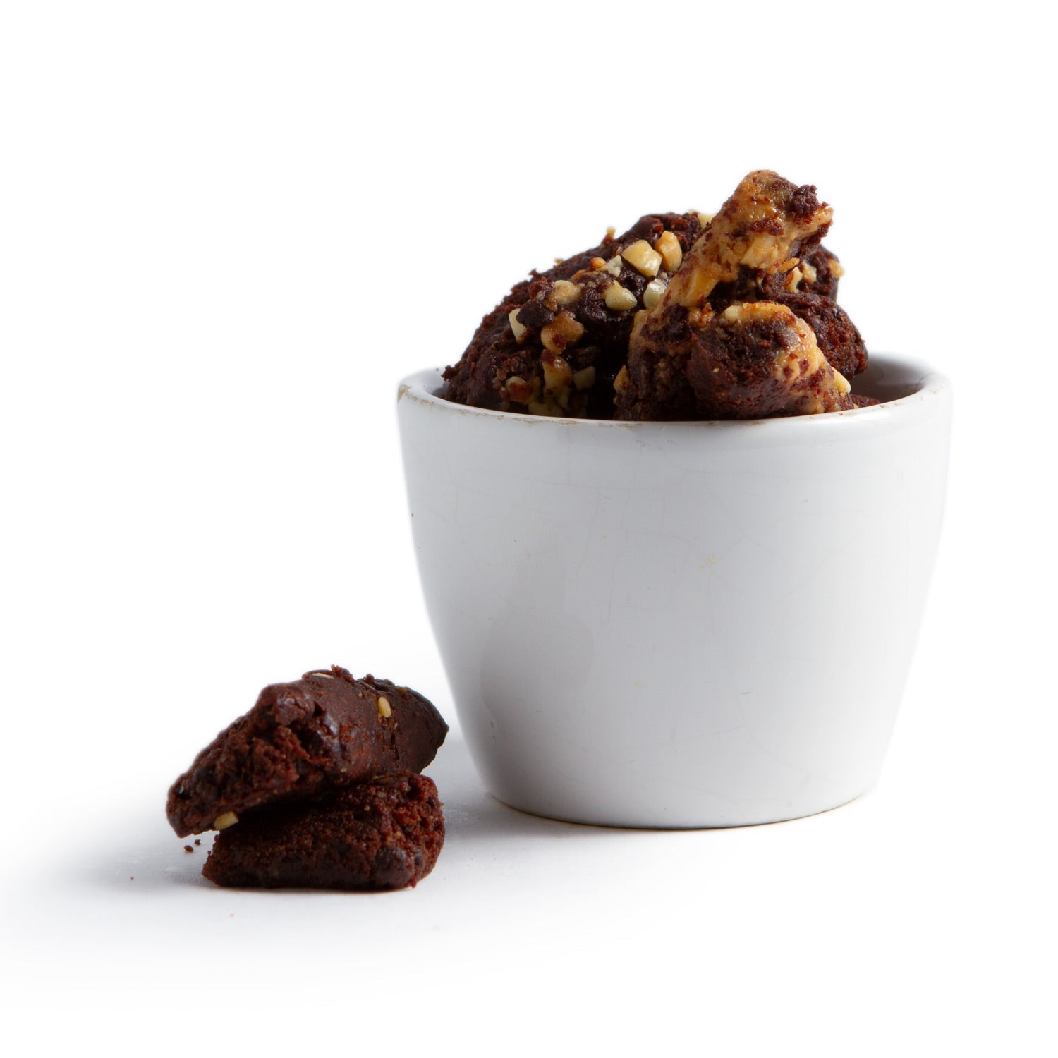 This brownie is baked in our dairy, egg, wheat, and gluten free facility. It’s also non GMO • vegan • cholesterol free • refined sugar free • free of artificial colours and flavours • trans fat free • certified Kosher Pareve • certified Halal