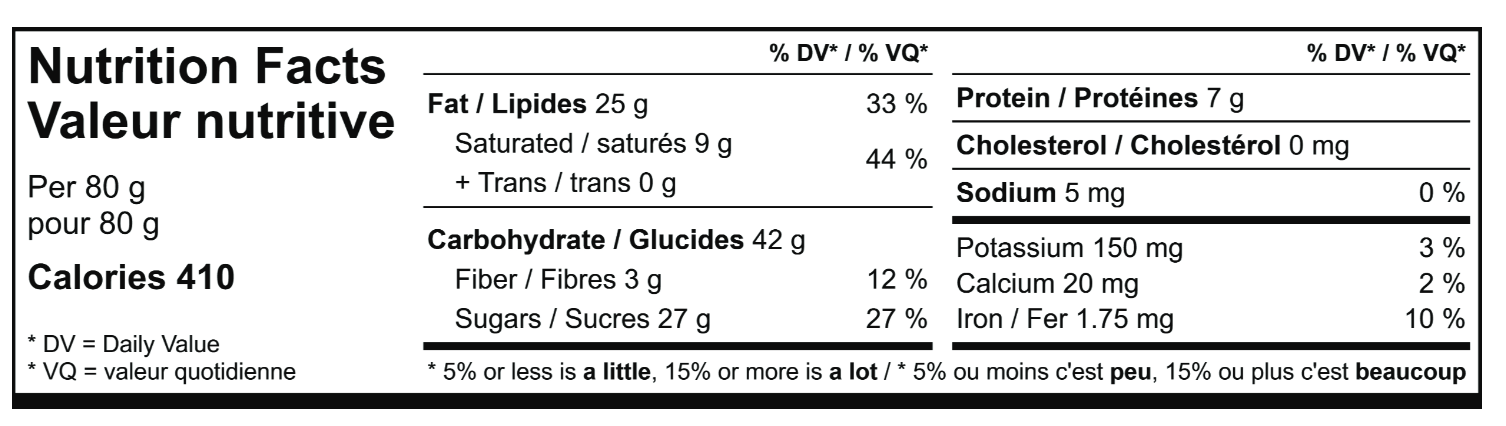 This bar is baked in our dairy, egg, wheat, and gluten free facility. It’s also non GMO • vegan • cholesterol free • refined sugar free • free of artificial colours and flavours • trans fat free • certified Kosher Pareve • certified Halal