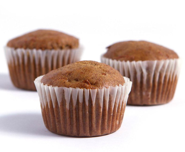 CARROT MUFFINS: Whole wheat flour, carrots, evaporated cane juice, unbleached wheat flour, canola oil, applesauce, organic flax seeds, baking powder, cinnamon, inulin, baking soda, sea salt. CONTAINS: WHEAT